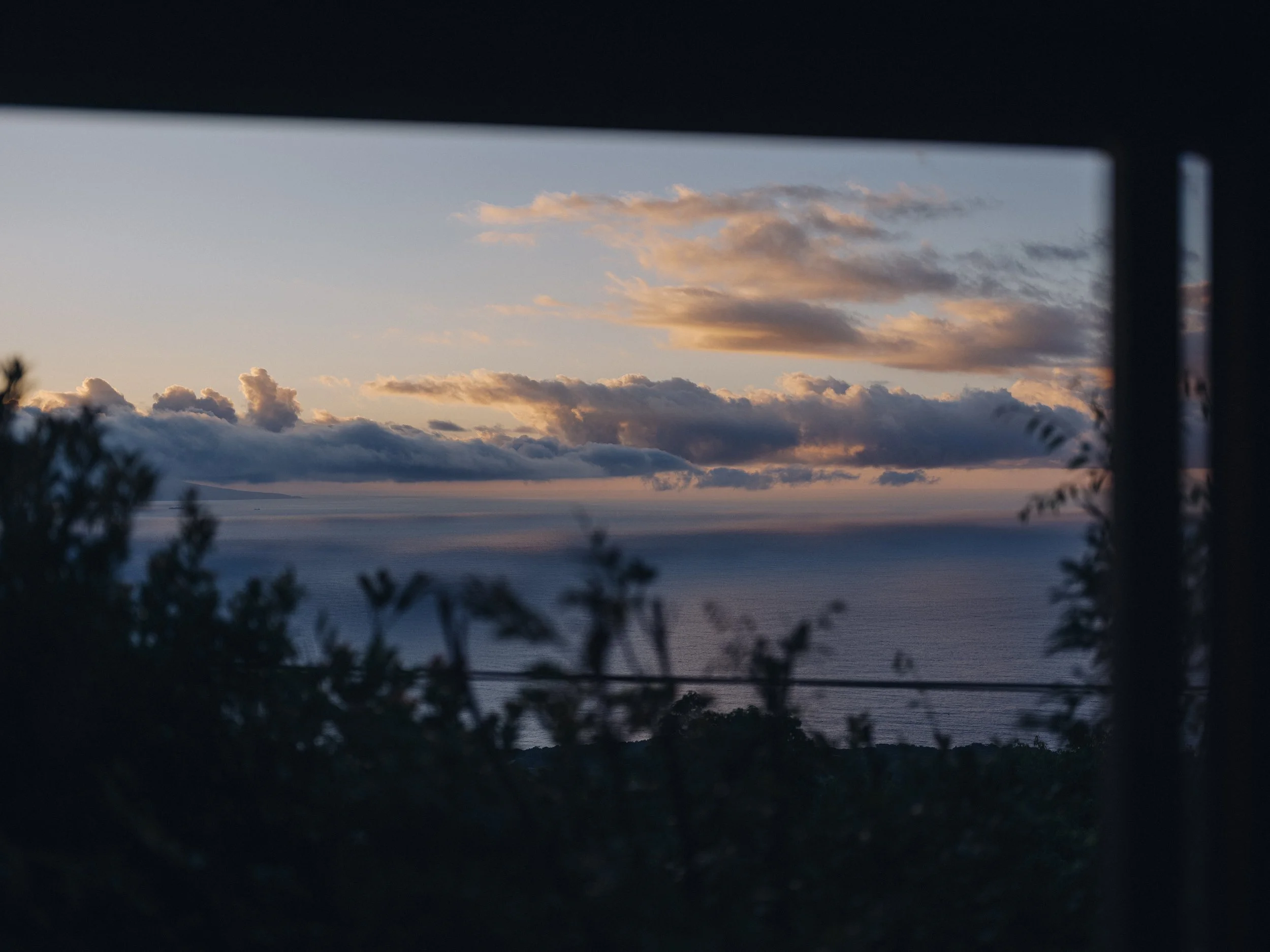 伊豆・八幡野の山の上に、ひっそりと佇む一軒の家。眼下に広がる海と森、空に溶け込むような眺望は、ここだけの特権。